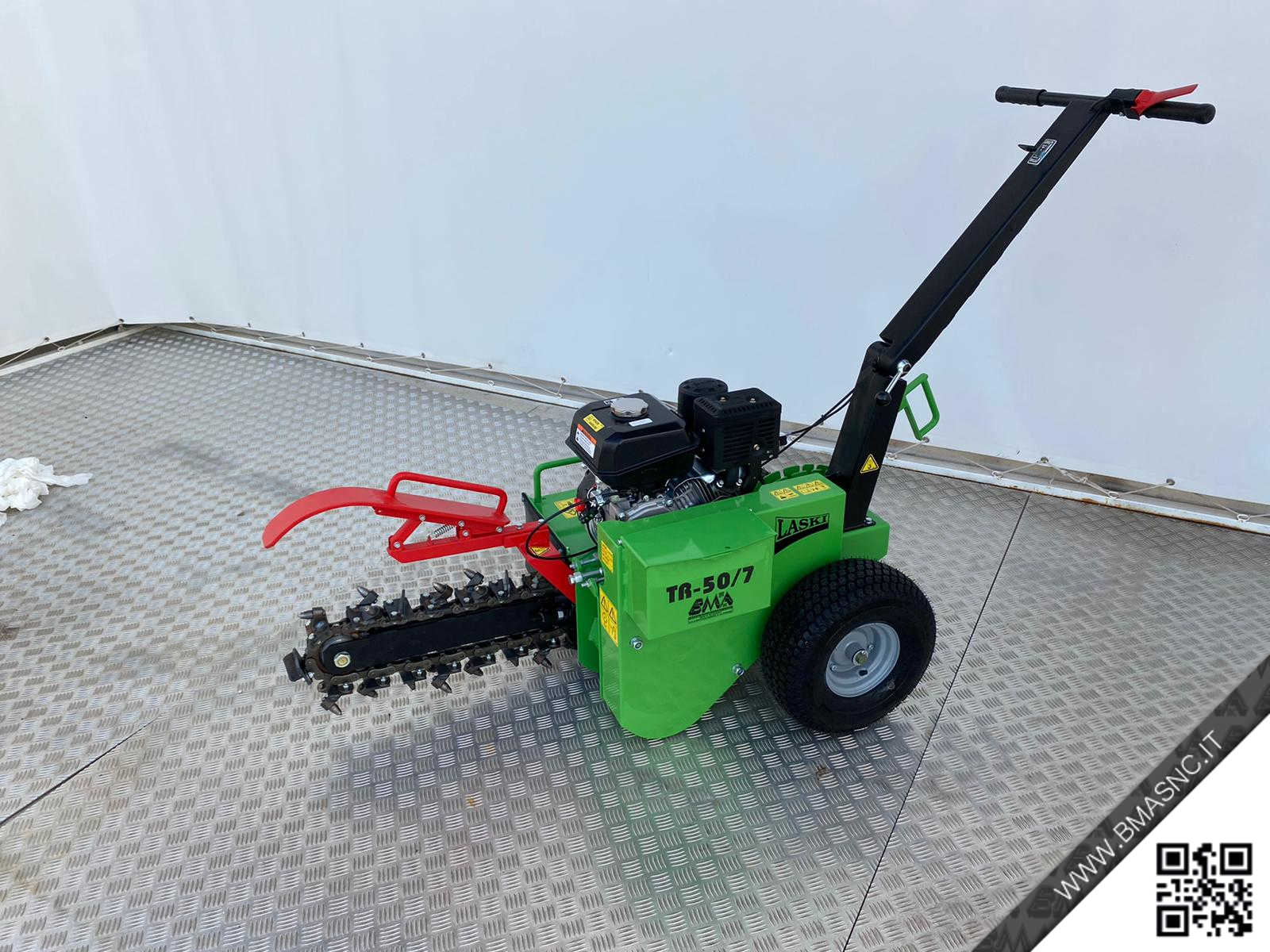 - Laski TR50/7 è dotata di una catena della lunghezza di 50 cm che permette una profondità massima di scavo di 45 cm. La larghezza della catena e quindi di scavo è di 10 cm. La velocità di scavo varia dai 40 ai 60 metri/ora in base alla profondità e al tipo di terreno.