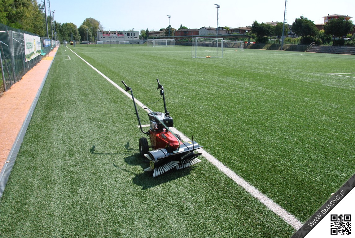 - Spazzola anteriore con diametro di 30 cm composta da morbide setole in poliestere antistrappo, adatte alla pulizia del manto sintetico. Larghezza di lavoro di 70 cm.